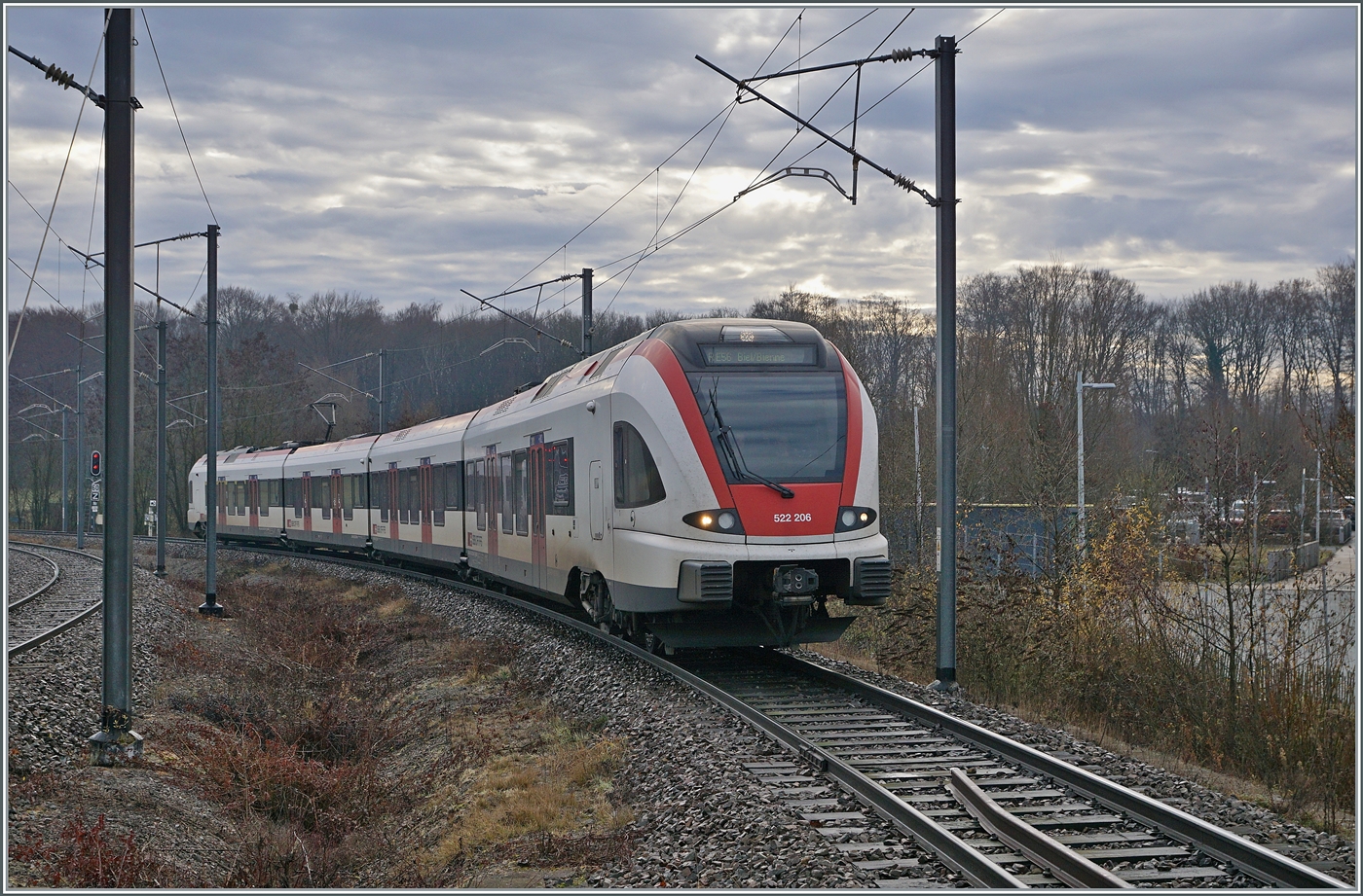 Der SBB RABe 522 219 bei der Ausfahrt als Léman Express 11133 in Lancy-Pont-Rouge nach Genève.