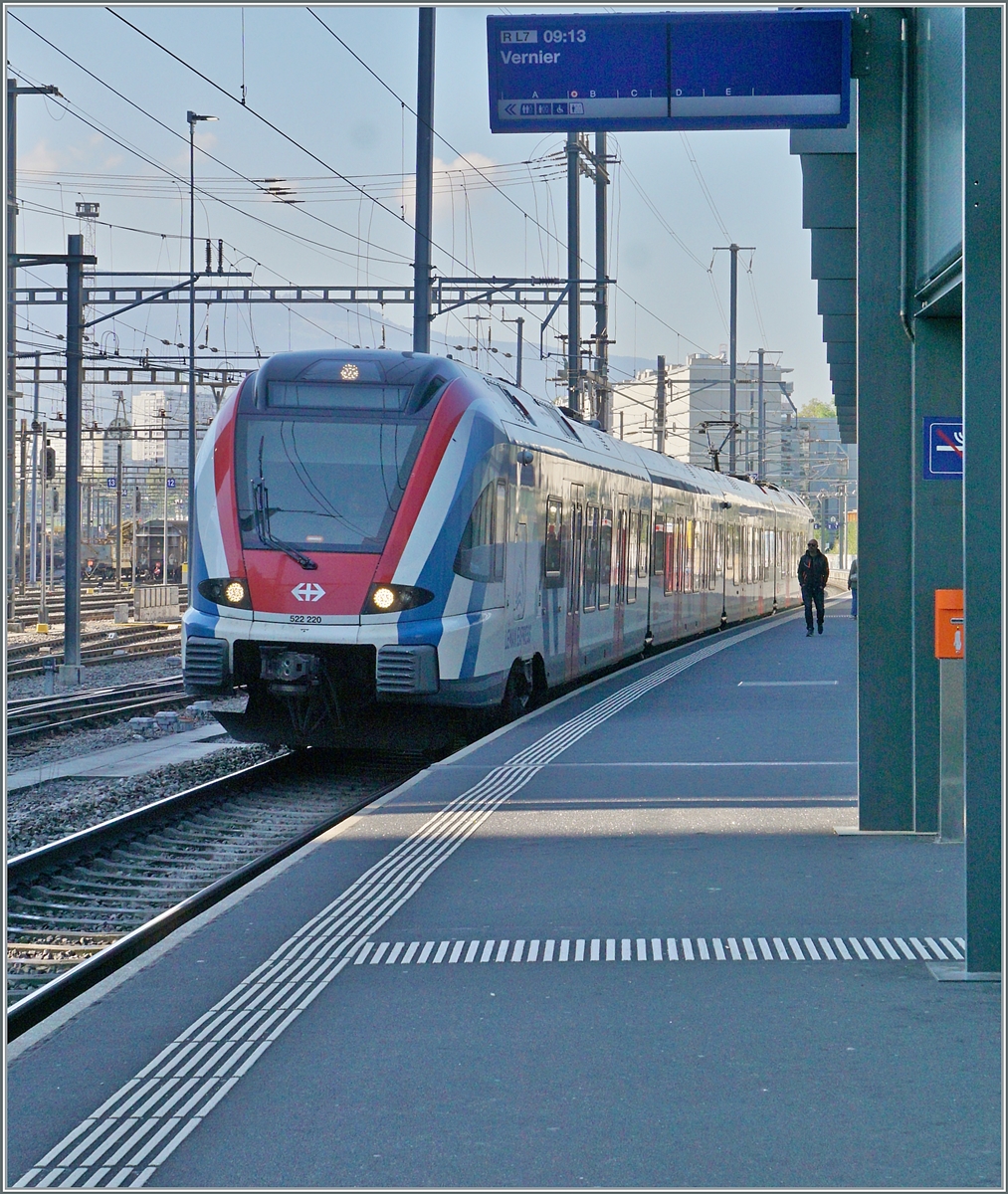Eine Viertelstunde später hat sich der Nebel bereits verzogen und der ausfahrende der SBB LEX RABe 522 215 konnte in La Plaine vor dem Hintergrund der Genfer Weinberge fotografiert werden.