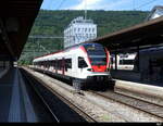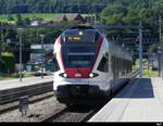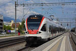 RABe 523 045, auf der S26, durchfährt den Bahnhof Rupperswil. Die Aufnahme stammt vom 04.02.2022.