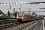 RABe 523 008, auf der S29, verlässt den Bahnhof Rupperswil. Die Aufnahmestammt vom 25.07.2022.