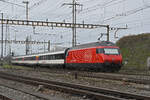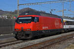 RABe 523 032, auf der S3, verlässt am 27.03.2023 den Bahnhof Gelterkinden.