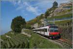 RABe 523 023 verlässt am 07.11.2015 St-Saphorin in Richtung Lausanne.