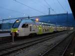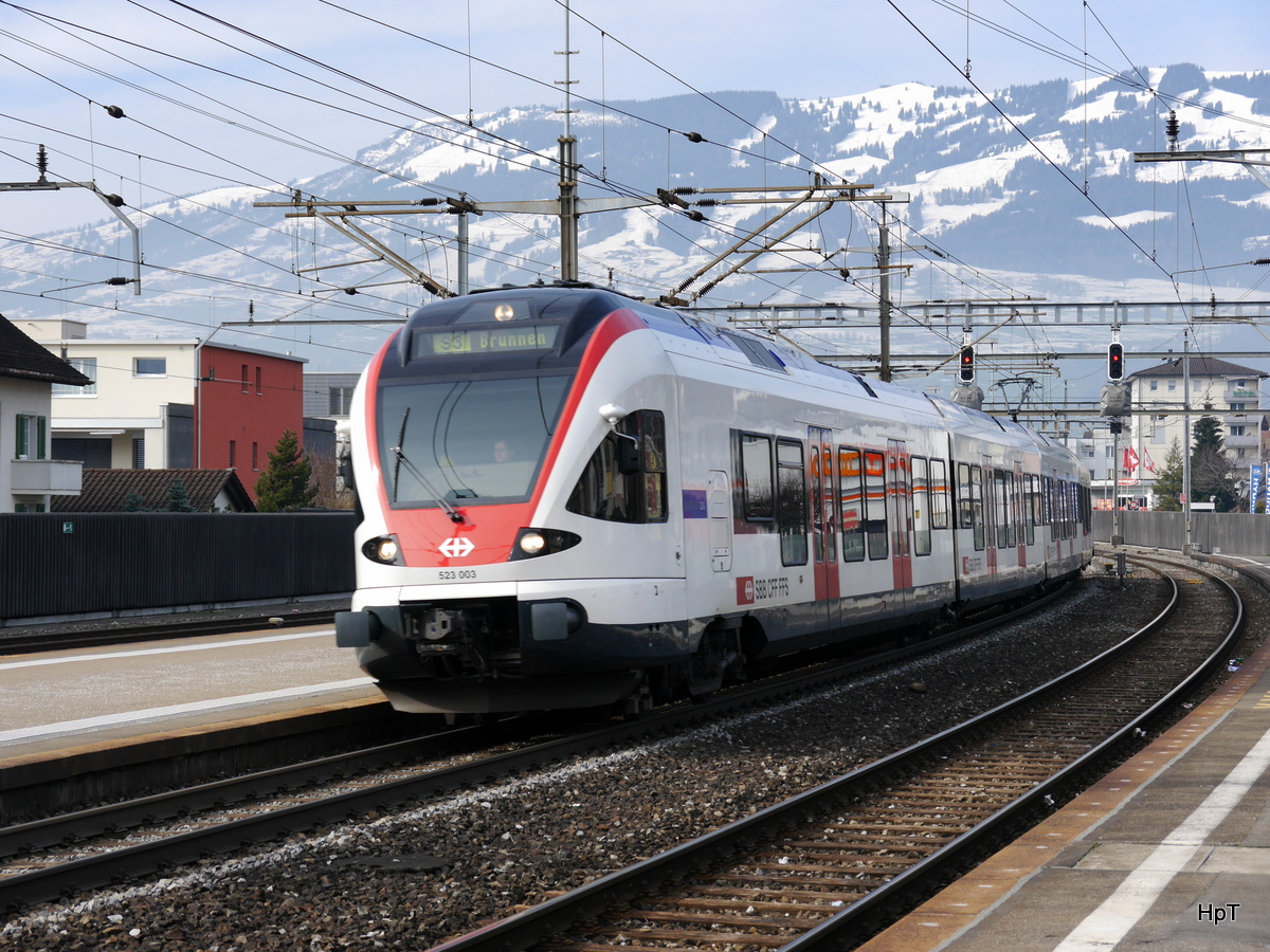 SBB - Triebzug RABe 523 003-7 bei der einfahrt im Bahnhof Schwyz am 27.02.2016