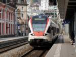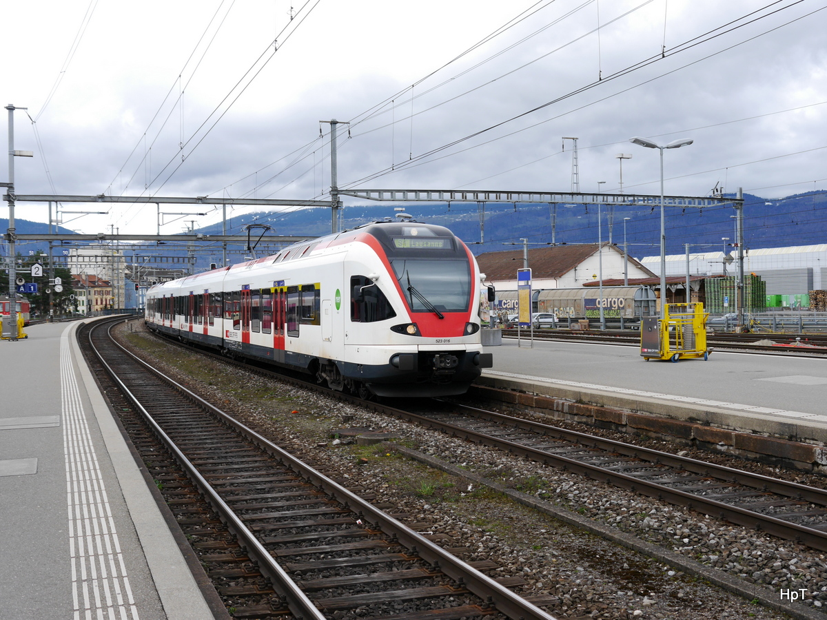 SBB - Triebzug RABe 523 016-9 bei der einfahrt im Bahnhof von Yverdon les Bains am 28.03.2016