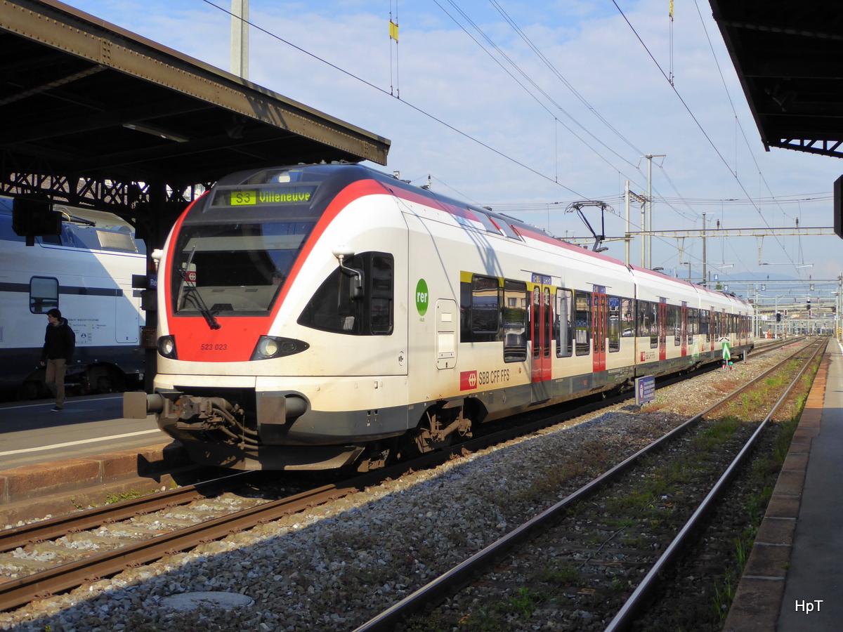 SBB - Triebzug RABe 523 023-5 bei der einfahrt im Bahnhof in Renens am 03.05.2016