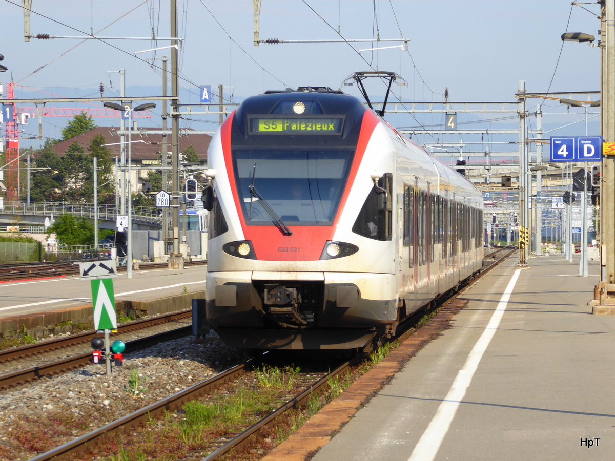 SBB - Triebzug RABe 523 031 bei der einfahrt im Bahnhof in Renens am 03.05.2016