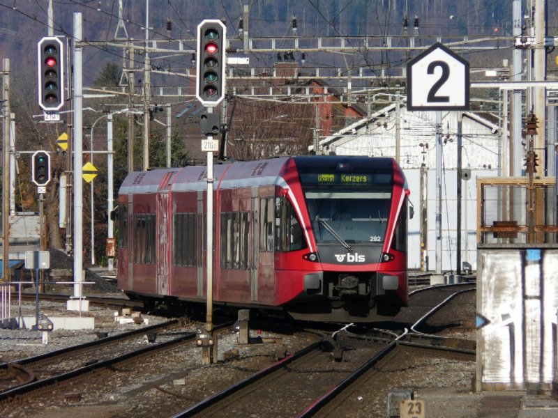 bls - Regio nach Kerzers mit dem RABe 2/8 526 282-9 bei der ausfahrt in Lyss am 26.12.2008