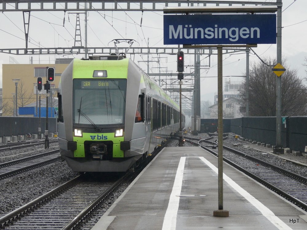 BLS - Vier Triebwagen Lötschberger an der Spitze der 535 112 als RE nach Bern bei der einfahrt in den Bahnhof Münsingen am 21.03.2010