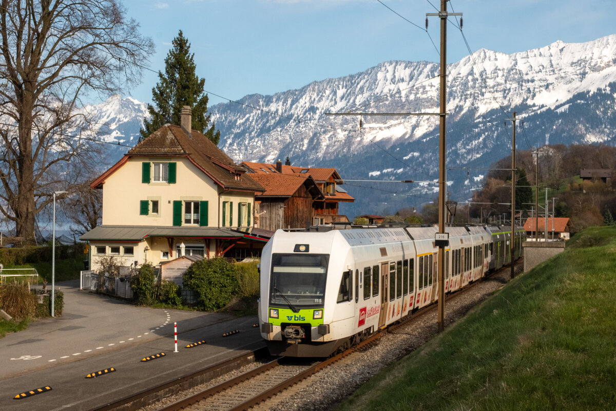 Am 20.8.11 fährt der RABe 535 120.0 gemeinsam mit dem RABe 535 105-1, dem RABe 535 106-9 und dem RABe 535 119-2 als RE 3178 von Spiez Richtung Einigen.