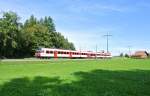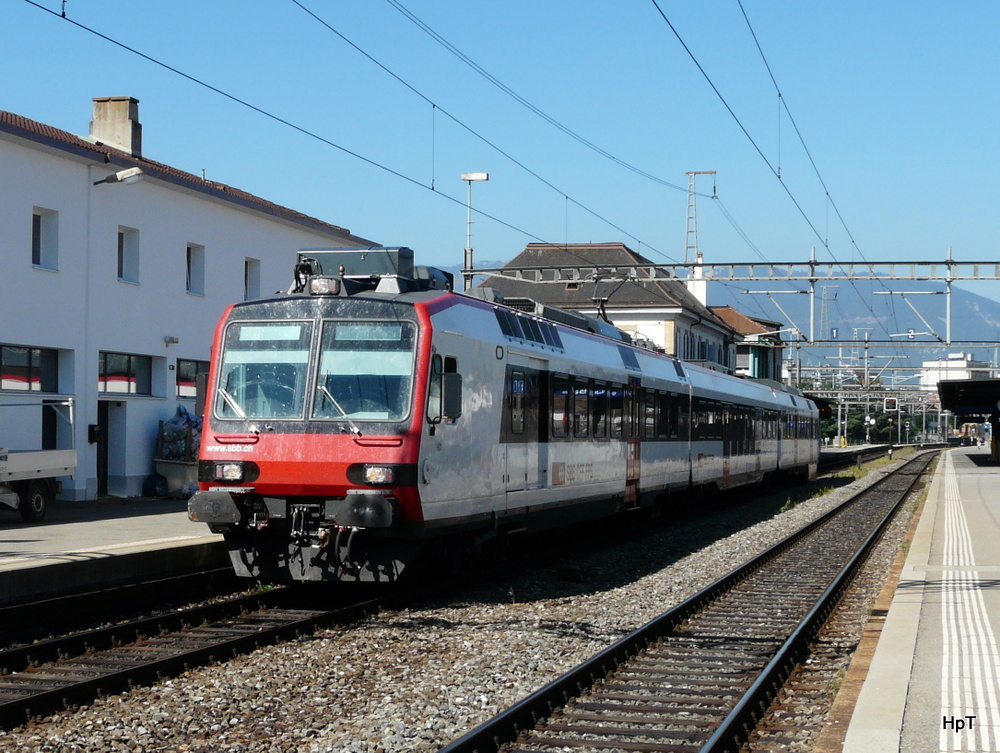 SBB - Regio mit dem Triebwagen RBDe 4/4 560 300-6 an der Spitze bei der Ausfahrt aus dem Bahnhof Yverdon-les-Bains am 04.09.2013