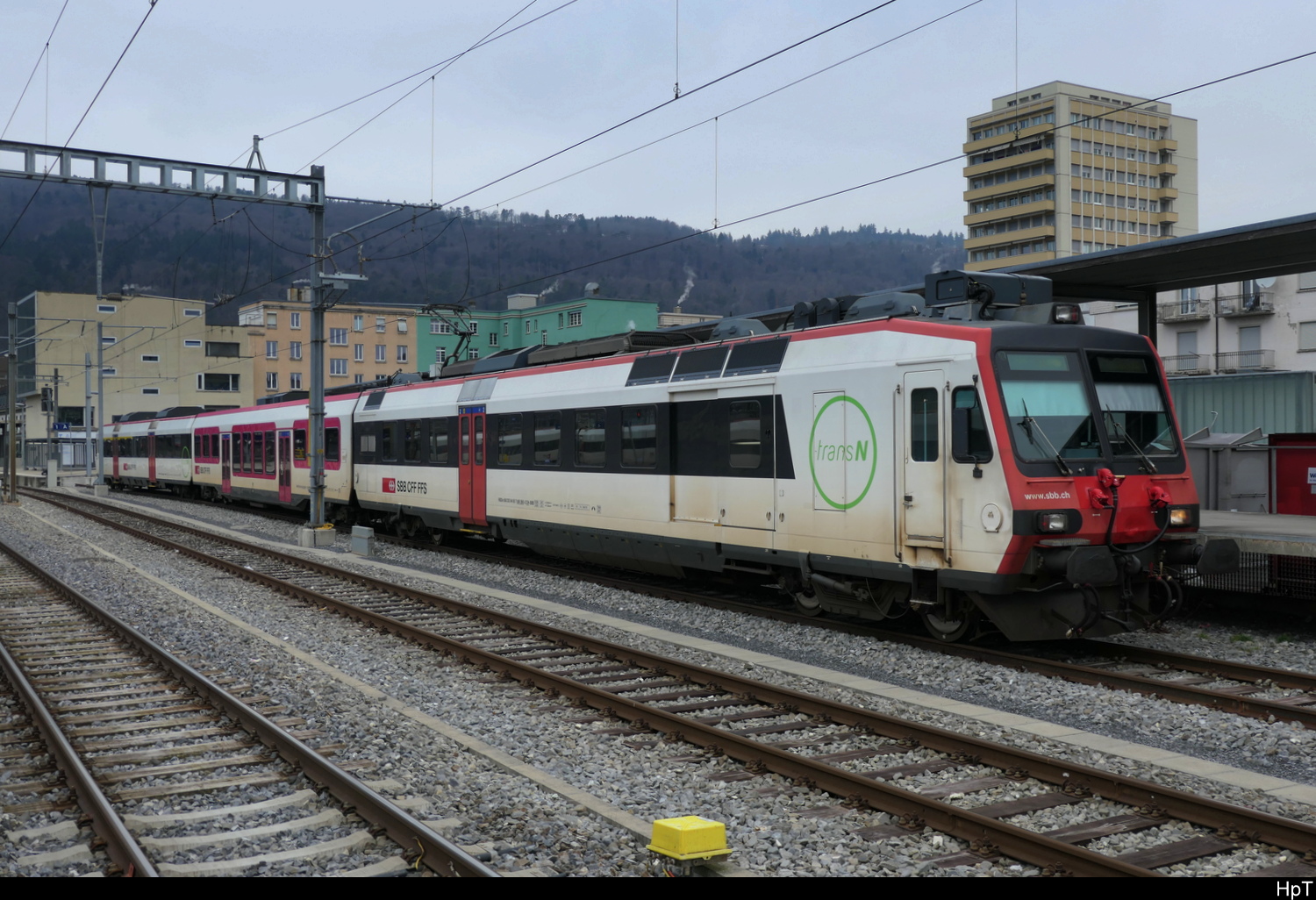SBB - Triebwagen RBDe 4/4 560 273-5 an der Spitze eines Reservezuges abgestellt in Fribourg am 01.03.2014