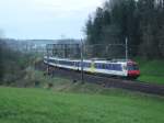 Quer durch die Schweiz 2008 - Auf unserer Reise von Deutschland über Schaffhausen-Winterthur-St. Gallen-Rapperswil-Zürich-Luzern nach Twann bei Biel sind wir nun am 01.05.2008 in Lenzburg eingetroffen. Von Baden (CH) kommend wird uns dieser NPZ nach Olten bringen. Schloss Lenzburg versteckt sich leider etwas hinter dem Querträger der Oberleitung.