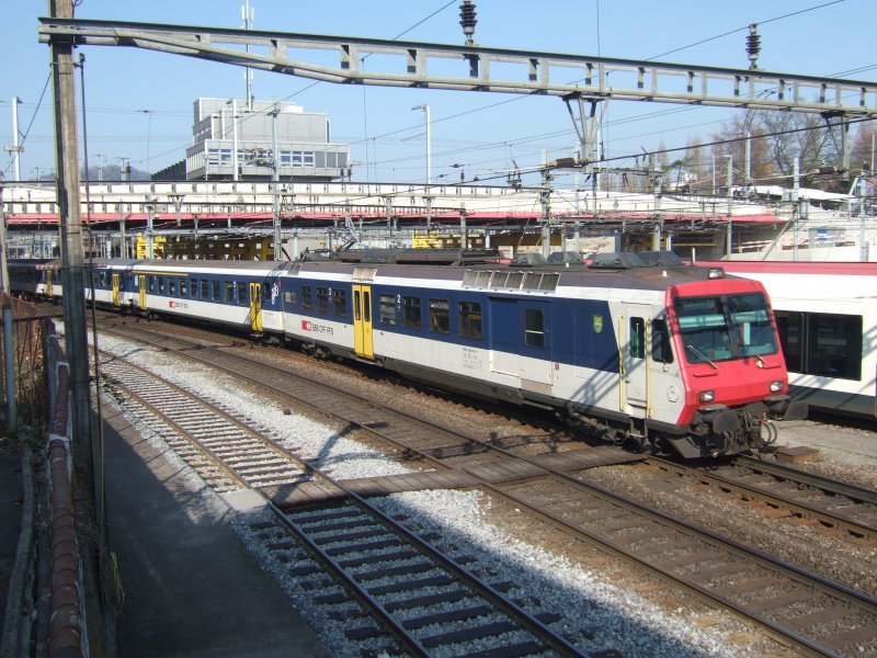 SBB: Eine Aufgabe, die während der Woche meistens von NPZ erledigt wird und an Wochenenden meistens von FLIRTs. Der Regioexpress von Luzern nach Olten wird am 9.4.09 von dem RBDe 560 047 "Les Eplatures" gezogen.