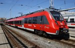Ein 5-teiliger RBDe 562 NPZ befindet sich am 18. Juli 2016 zwischen Ligerz und Twann. Aufgenommen vom Schiff aus.