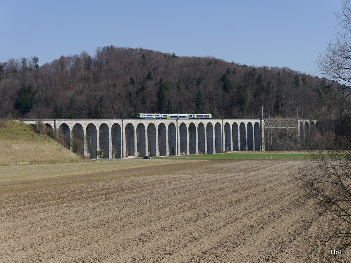 BLS - Regio nach Bern mit eine BLS NPZ Triebwagen 565 oder 566 unterwegs beim Viadukt in Gümmenen am 24.03.2018