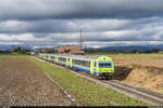 BLS RBDe 565 736 als S52 (Lyss -) Kerzers - Bern am 29. Dezember 2020 bei Durchfahrt der ehemaligen Haltestelle Ferenbalm-Gurbrü.