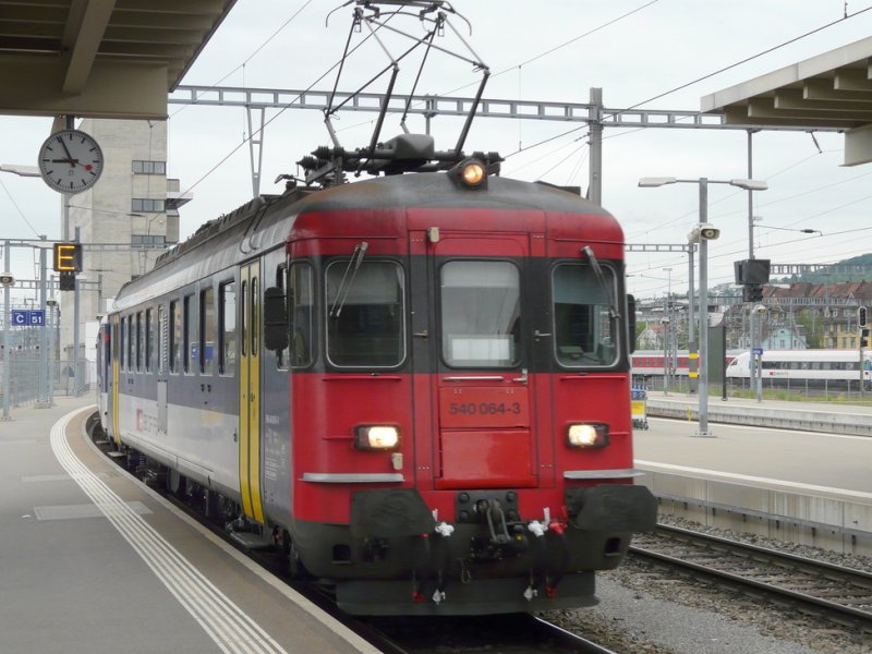 Der „Schüttelbecher“ RBe 540 074 mit dem B 305, A 524 und am Zugschluss der Swiss-Express-Lokomotive Re 4/4 II 11141 (Re 420 141-4) des DSF Koblenz als Extrazug 31415 (Koblenz – Luzern), kurz nach dem Bahnhof Steinerberg aufgenommen | 01.08.2025 S. Achermann