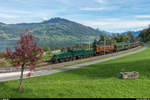 Einer der letzten Einsätze des RBe 540. Dieser Zug mit RBe 540 039-5 an der Spitze bringt die Bergwanderer nach Göschenen. Hier am Zuger See bei Walchwil. Oktober 2014.