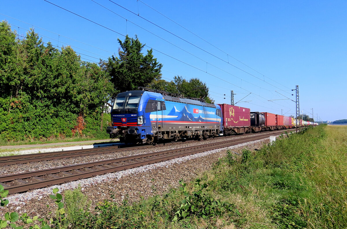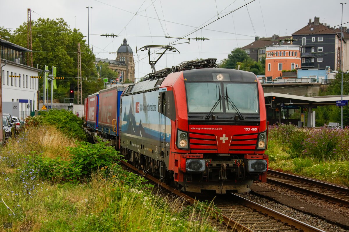 Die an die SBB Cargo International AG vermietete mit "XLoad“ ausgestattete 193 460 "1000er Stägli Olten" (91 80 6193 460-3 D-SIEAG) der SüdLeasing GmbH, Stuttgart (eingestellt in Deutschland durch Siemens) fährt am 16 Oktober 2025 mit einem KLV-Zug, durch Kirchen/Sieg in Richtung Köln. Die Multisystemlokomotive Siemens Vectron MS wurde 2024 von Siemens Mobilitiy in München-Allach unter der Fabriknummer 23796 gebaut. Sie wurde in der Variante A40-1a ausgeführt und hat so die Zulassung für Deutschland, Österreich, die Schweiz, Italien, die Niederlande und Belgien (D / A / CH / I / NL / B). Sie verfügt über eine Leistung von 6,4 MW (160 km/h) und ist neben den nationalen Zugsicherungssystemen mit dem Europäischen Zugsicherungssystem (ETCS BL3) ausgestattet. Zudem ist sie mit der neuen Ausrüstungspaket XLoad ausgestattet.