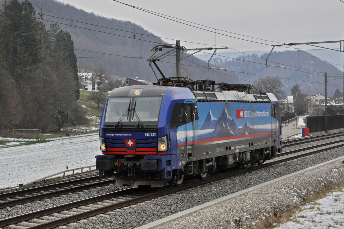 Siemens Vectron 193 523-8 fährt Richtung Bahnhof Gelterkinden. Die Aufnahme stammt vom 11.01.2021.