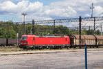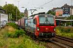 Die an die SBB Cargo International AG vermietete mit  XLoad“ ausgestattete 193 460  1000er Stägli Olten  (91 80 6193 460-3 D-SIEAG) der SüdLeasing GmbH, Stuttgart (eingestellt in Deutschland durch Siemens) fährt am 16 Oktober 2025 mit einem KLV-Zug, durch Kirchen/Sieg in Richtung Köln.