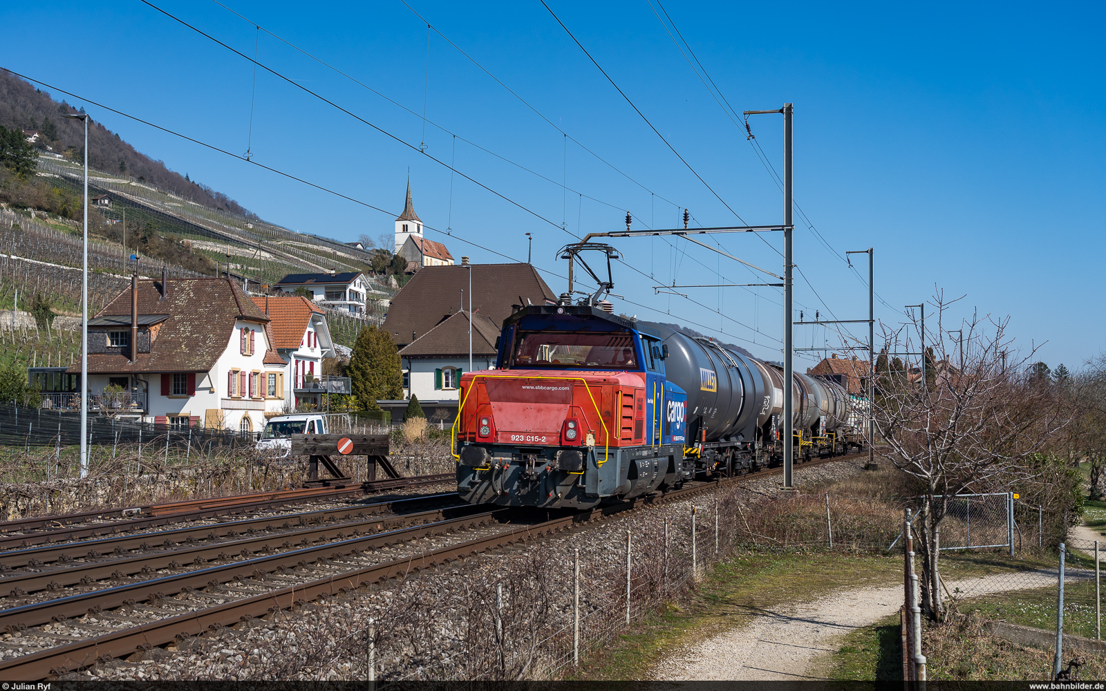 Die Br 193 462 "Gallarate" fährt mit leeren Kesselwagen durch Cressier NE nach Cornaux. Der Zug kommt aus Hamburg Hohe Schaar. Am Nachmittag fuhr die Vectron dann mit vollen Wagen zurück nach Hamburg. 10.11.2022