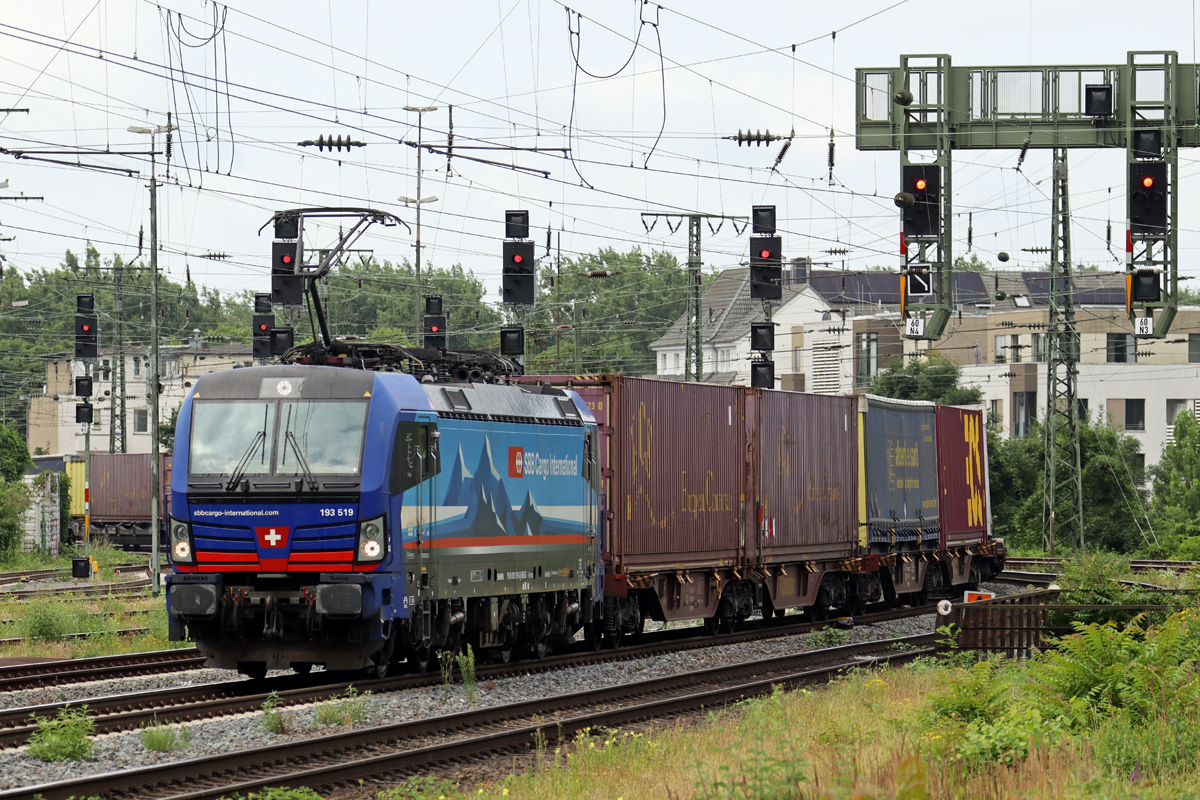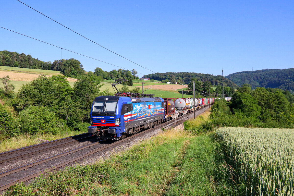 Die Br 193 525 "Hollandpiercer" fährt mit einem Güterzug durch Hornussen Richtung Italien. 12.6.2023