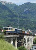 Re 421 381-5 der WRS durchfährt den Bahnhof Pratteln.