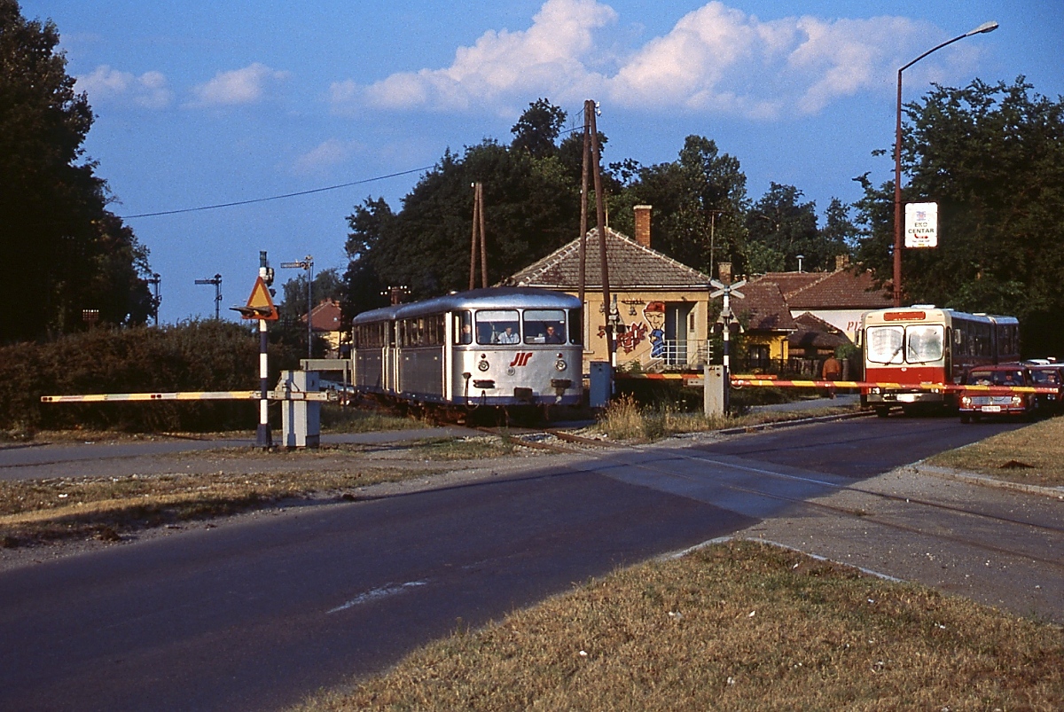 Im Juni 2000 sind ein 812 und ein Steuerwagen im Depot Subotica abgestellt