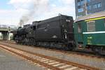 CZ-PUS 92 54 2 771 069-2 + 92 54 2 721 141-0, historisch angeschrieben als CSD T669 1069 + T458 1141, fahren am 17.Juni 2018 mit dem Feuerlöschzug in den Bahnhof Bratislava Petrzalka ein. Am Zugschluß läuft die SK-ZSSKC 753 109-8 mit.