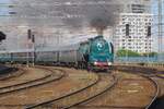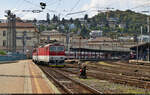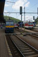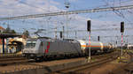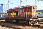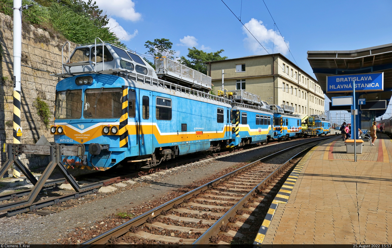 Abgestellt auf dem nördlichsten Gleis von Bratislava hl.st. (SK) sind die vier Motorturmwagen MVTV 02-03 (99 56 9484 203-1 SK-ŽSR), MVTV 02-10 (99 56 9484 210-6 SK-ŽSR), MVTV 02-09 (99 56 9484 209-8 SK-ŽSR) und MVTV 02-05 (99 56 9484 205-6 SK-ŽSR) sowie ein Schwerlast-Flachwagen mit der Bezeichnung "Smmp" (83 56 4622 562-2 SK-ŽSR).