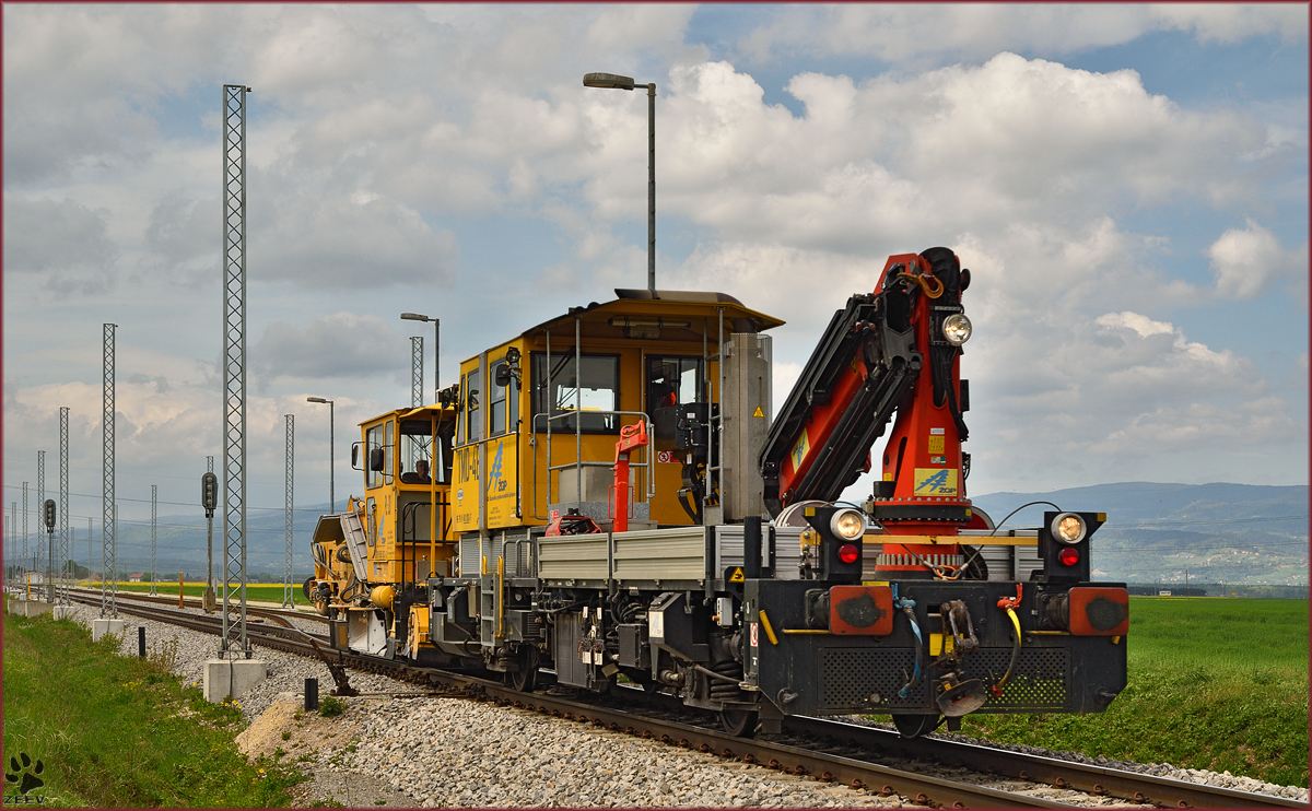 Die Baumaschinen der S´ warten in Pragersko auf Einsatz über die Wochenende (+Montag) bei Erneuerung der Stecke Pragersko-Kidričevo. Jedes Wochenende wird cca. 300 biss 400m komplett Erneuert. /17.8.2012