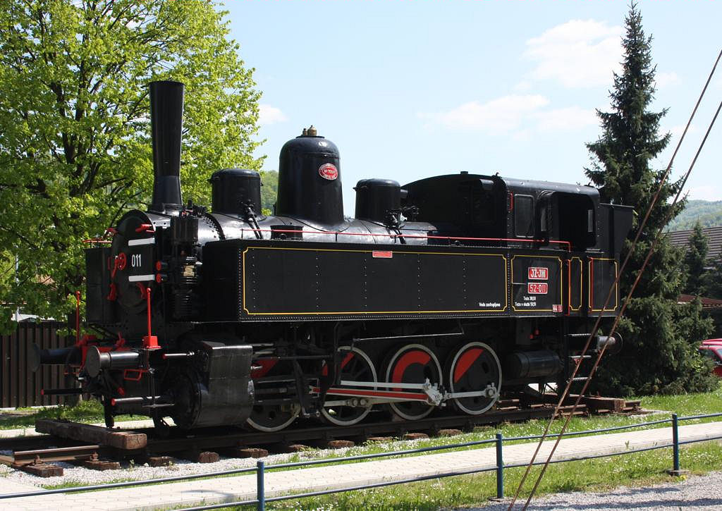 Am Bahnhof in Lasko steht eine Denkmallok. Es handelt sich um die D-Kuppler Tenderlok der JZ mit der Nummer 52011. Meine Aufnahme entstand am 28.4.2008. Gerd Hahn