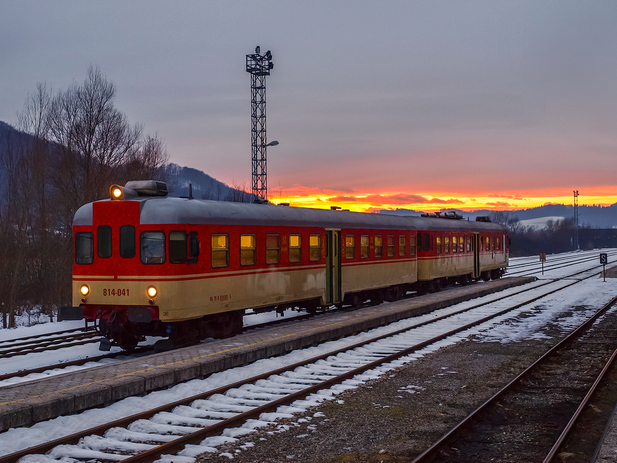 Der slowenische Triebwagen 813 041 hat am Nachmittag des 05.01.2015. soeben als grenzüberschreitender Regionalzug 7810 von Djurmanec (HR) nach Rogatec (SLO) seine Endstation Rogatec erreicht und wartet nun im Leerlauf auf die in eineinhalb Stunden bevorstehende Rückkehr nach Kroatien.