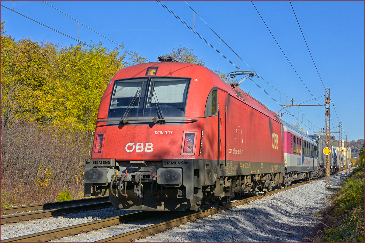 SŽ 541-102 zieht LkW-Zug durch Maribor-Tabor Richtung Tezno VBF. /10.9.2020