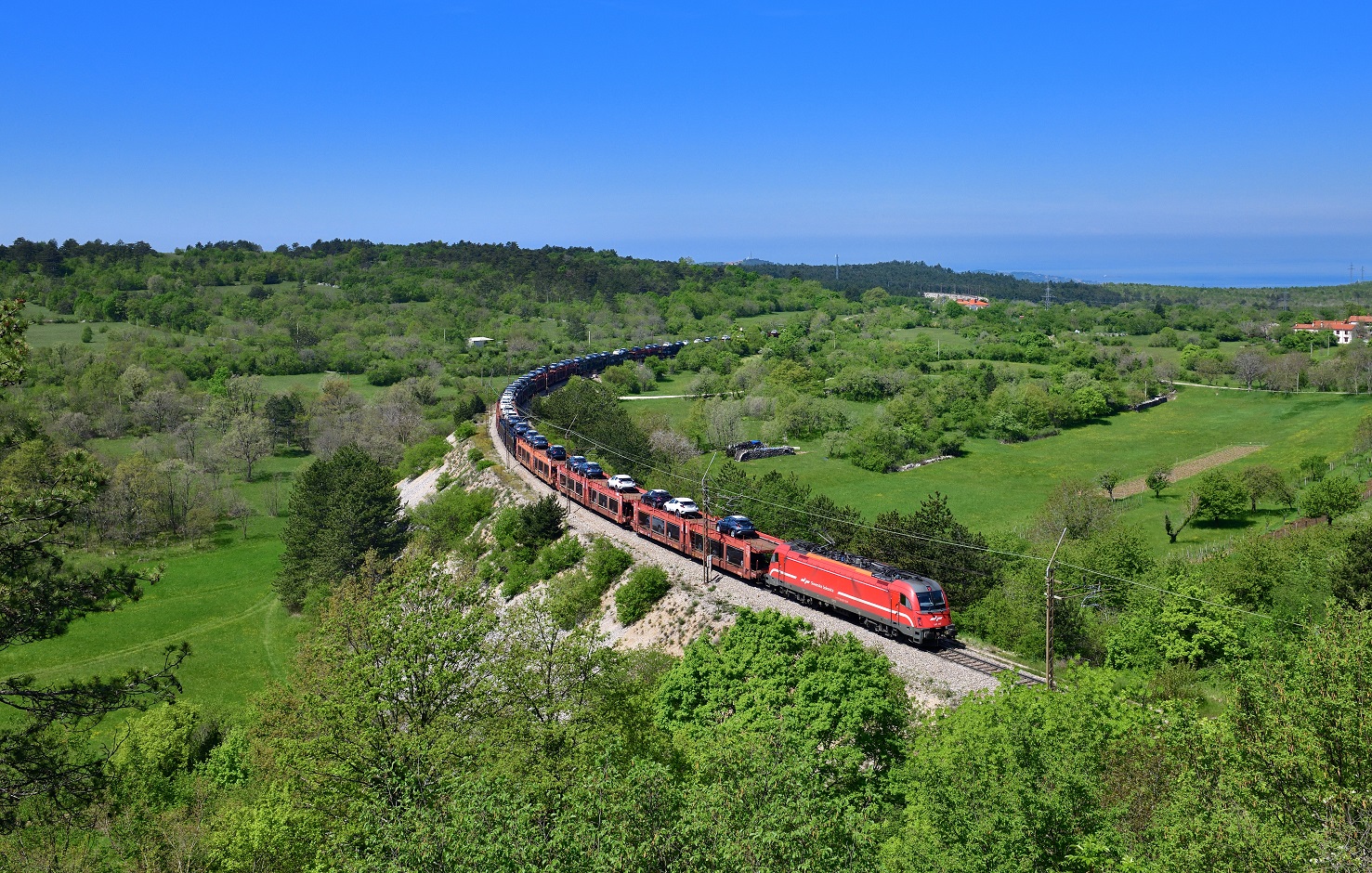 SŽ 541-103 zieht leeren Autozug durch Maribor-Tabor Richtung Norden. /6.2.2021