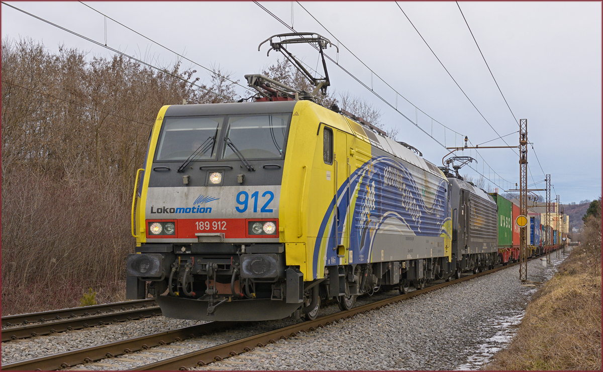 Lokomotion 189 912 zieht Containerzug durch Maribor-Tabor Richtung Koper Hafen. /3.2.2021