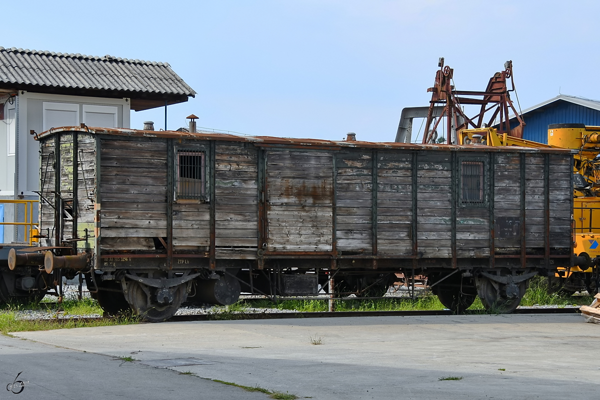 Ein 3-achsiger gedeckter Güterwagen war Ende August 2019 im Eisenbahnmuseum Ljubljana abgestellt.