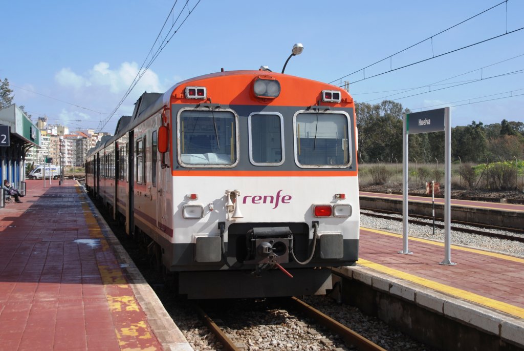 HUELVA (Andalusien/Provinz Huelva), 16.02.2010, ein Regionalzug nach Sevilla Santa Justa wartet auf die Abfahrt