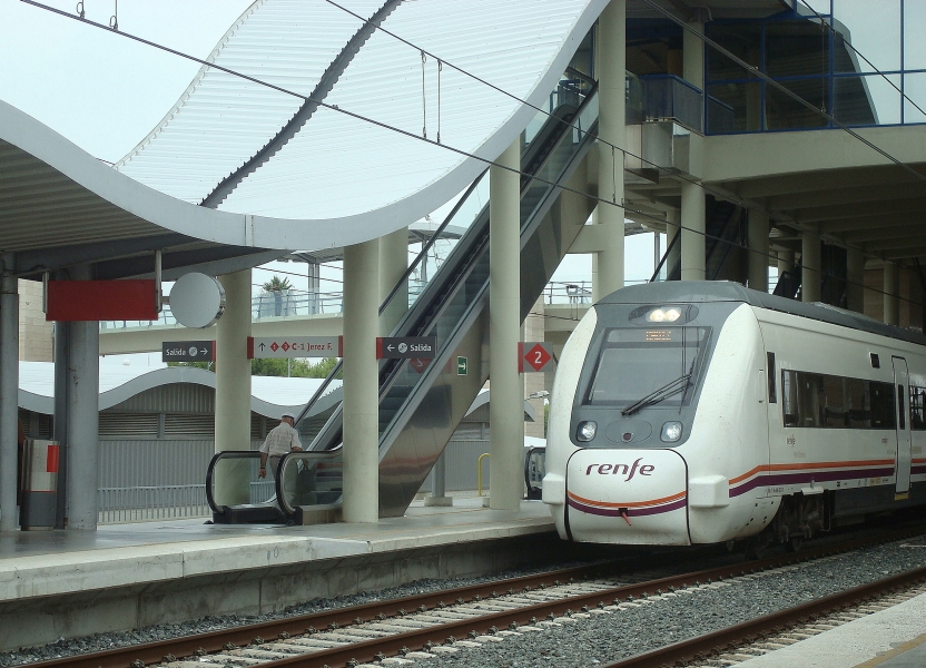 Ein  Medio Distancia  - eine Art Regionalexpress - aus Sevilla Santa Justa erreicht San Fernando. Nach kurzem Aufenthalt geht es weiter Richtung Endstation: Cadiz, direkt am Atlantik. 23.9.2010