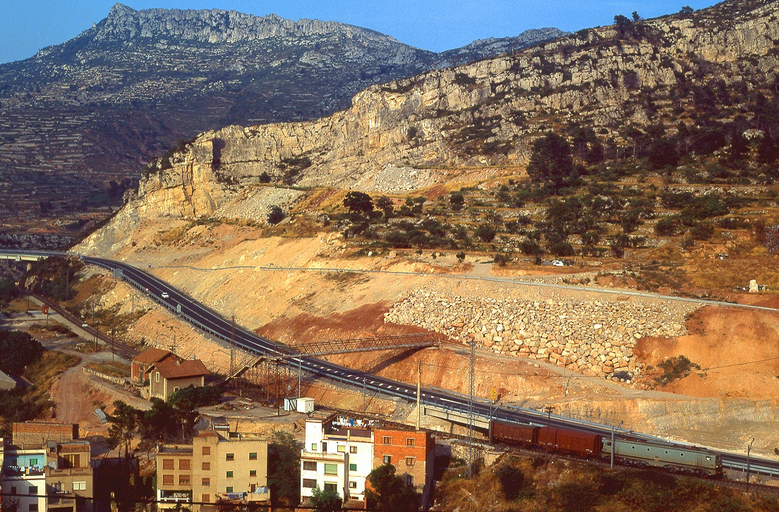 In den 80er Jahren konnten in Spanien noch die Loks der Reihe 276/286 beobachtet werden. Sie wurden unter Lizenz von Alstom gebaut und hießen deswegen "Francesas". Hier kommt Lok 286 022 mit einem nächtlichen Personenzug aus Madrid im morgendlichen Cordoba an. Der Zug hat an allen Unterwegsbahnhöfen gehalten und Post sowie Expressgut transportiert. Die drei Reisezugwagen am Schluß des Zuges gehören zu der Reihe 5000/6000 aus den 1950er Jahren. Oktober 1981.