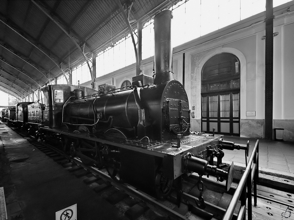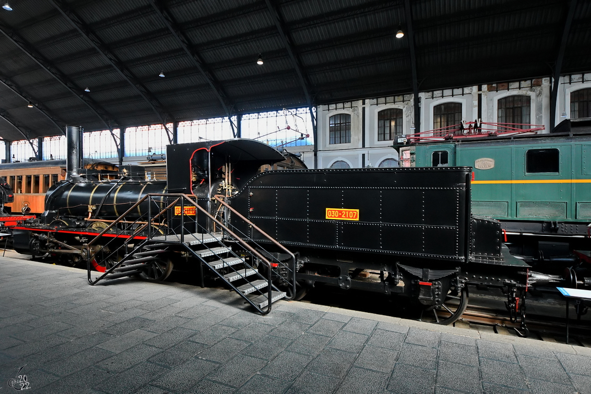 Der Führerstand der 1861 in Frankreich gebauten Dampflokomotive 030-2107 "El Alagón" war frei zugänglich. (Eisenbahnmuseum Madrid, November 2022)