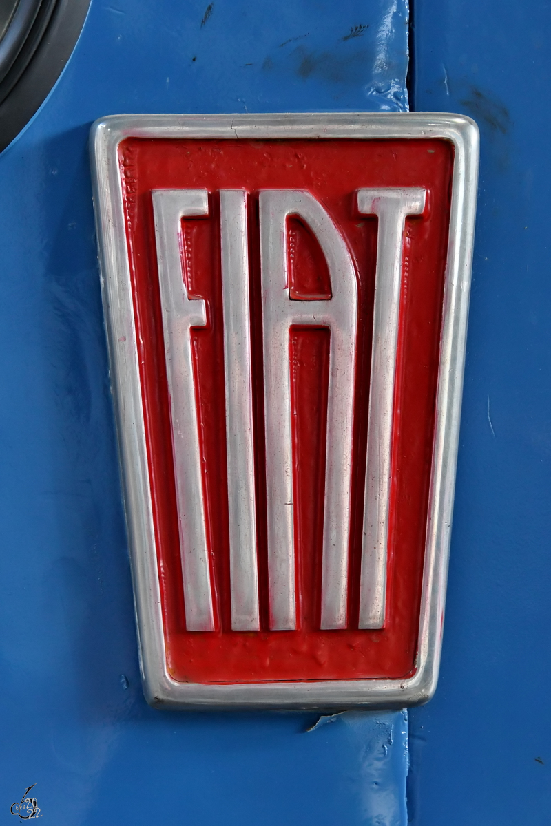 Das Herstellerlogo auf dem 1965 gebauten Dieseltriebzug 597-010-8, welcher Teil der Ausstellung im Eisenbahnmuseum Madrid ist. (November 2022)