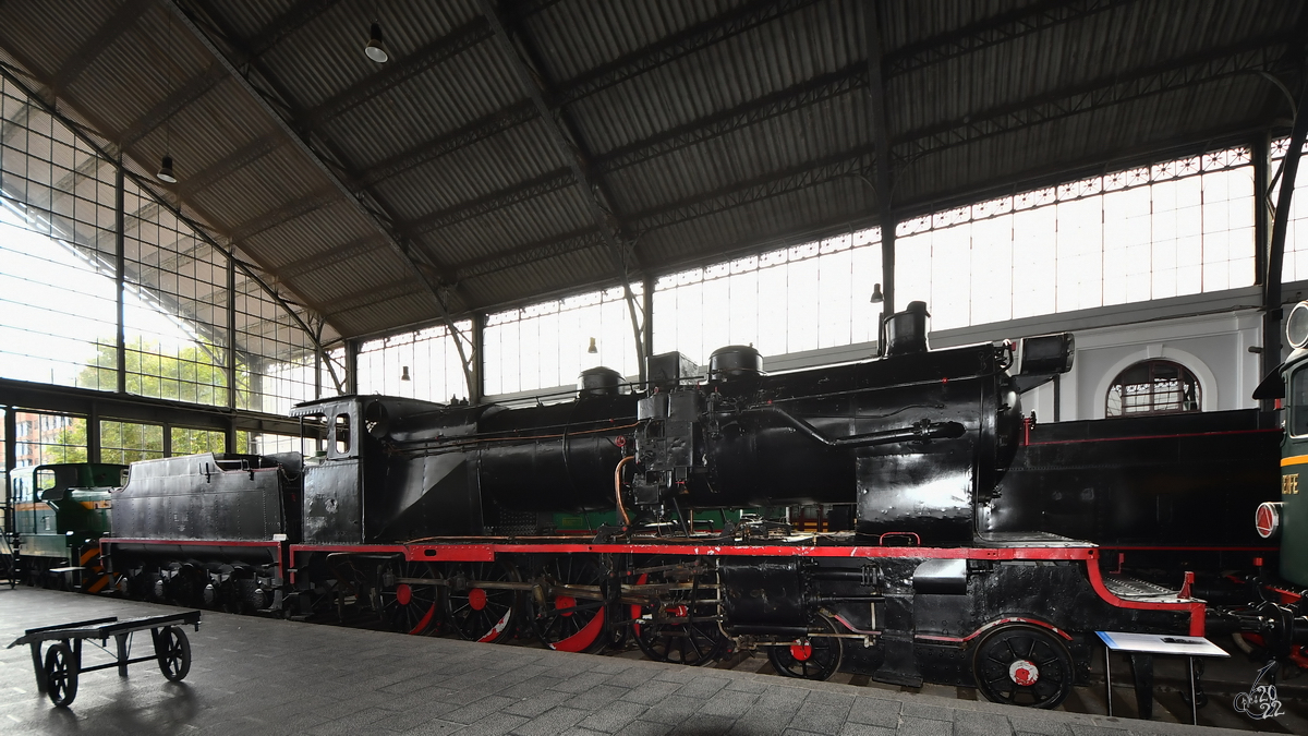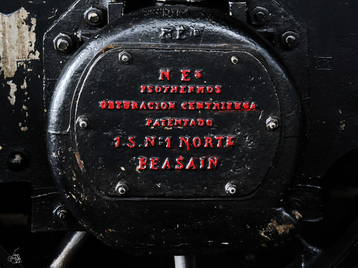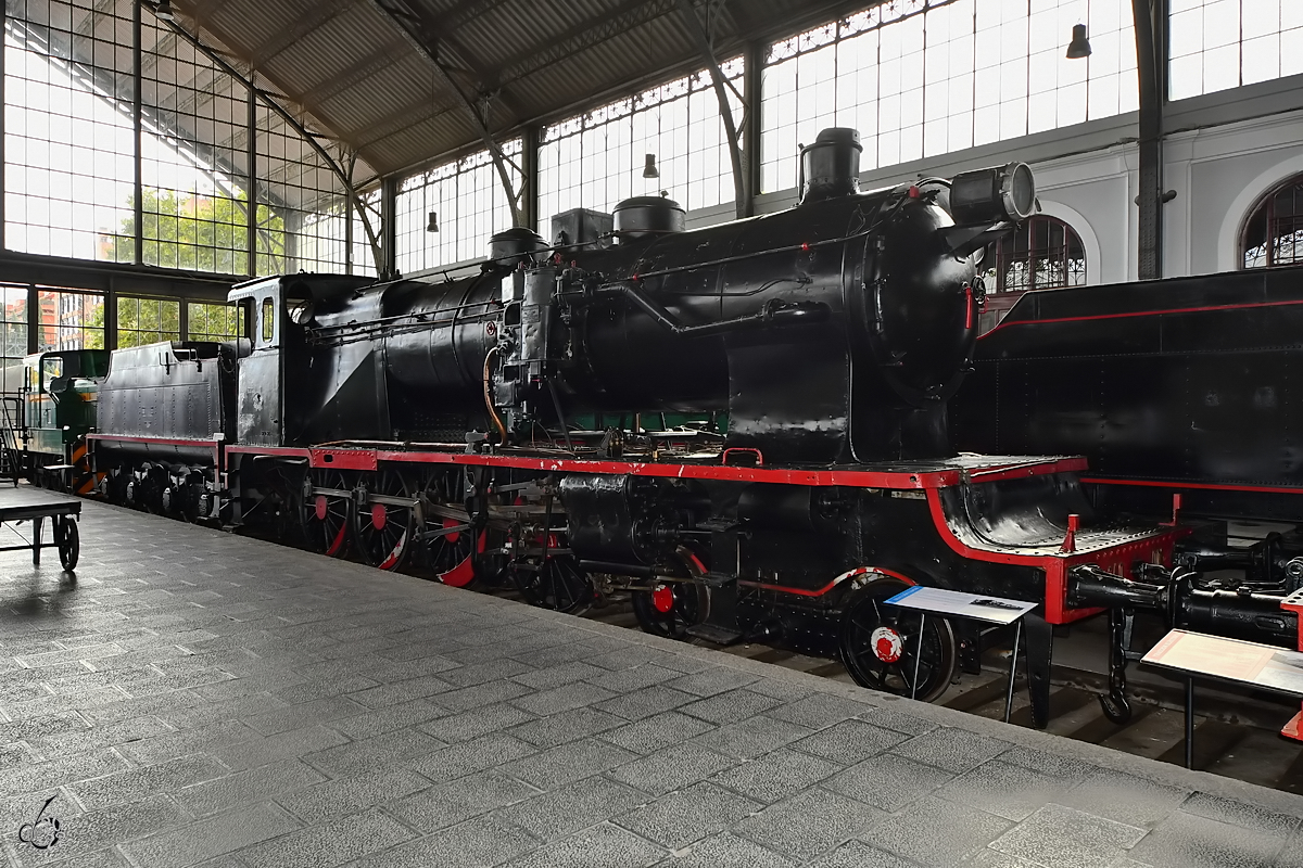 Die Dampflokomotive MZA 1155 "Mastodonte" (240-2135) stammt aus dem Jahr 1913. (Vilanova i la Geltrú, November 2022)