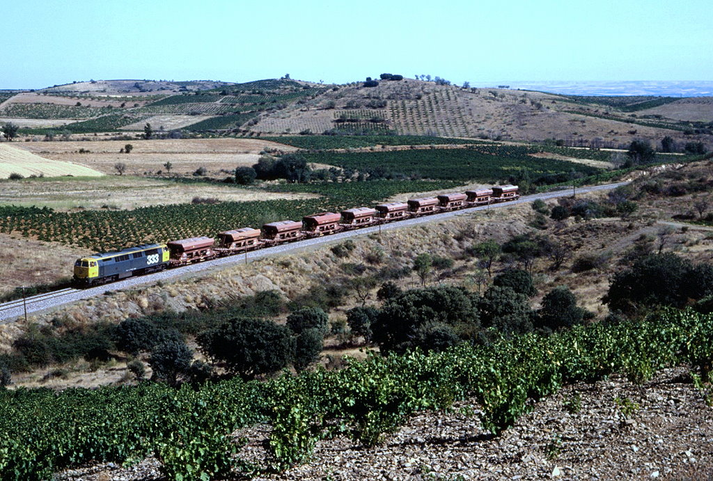 333 024 bei Encinacorba, Strecke Zaragoza - Valencia, 05.09.1991.