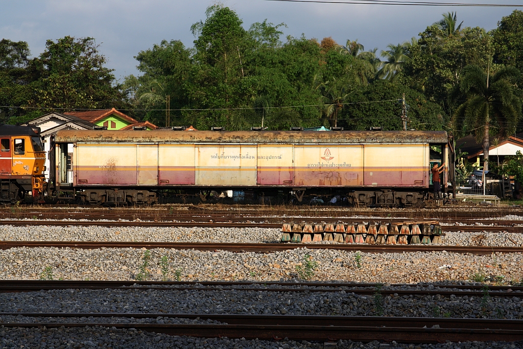 บ.ต.ญ. 8 (บ.ต.ญ.=B.C.G./Bogie Covered Goods Wagon, gebaut 1943 in Japan) am 18.Mai 2013 im Depot Chumphon.