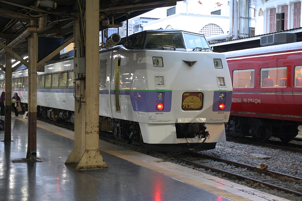 Mit den KIHA 183-211 + 182-41 + 182-42 + 183-218 haben die thailändischen Staatsbahnen nun die zweite KIHA 183 Garnitur in Betrieb genommen und setzen diese für den Ausflugsverkehr ein. - Das Bild vom 04.Dezember 2024 in Hua Lamphong Station zeigt den KIHA 183-211 als erstes Fahrzeug. Karl Seltenhammer