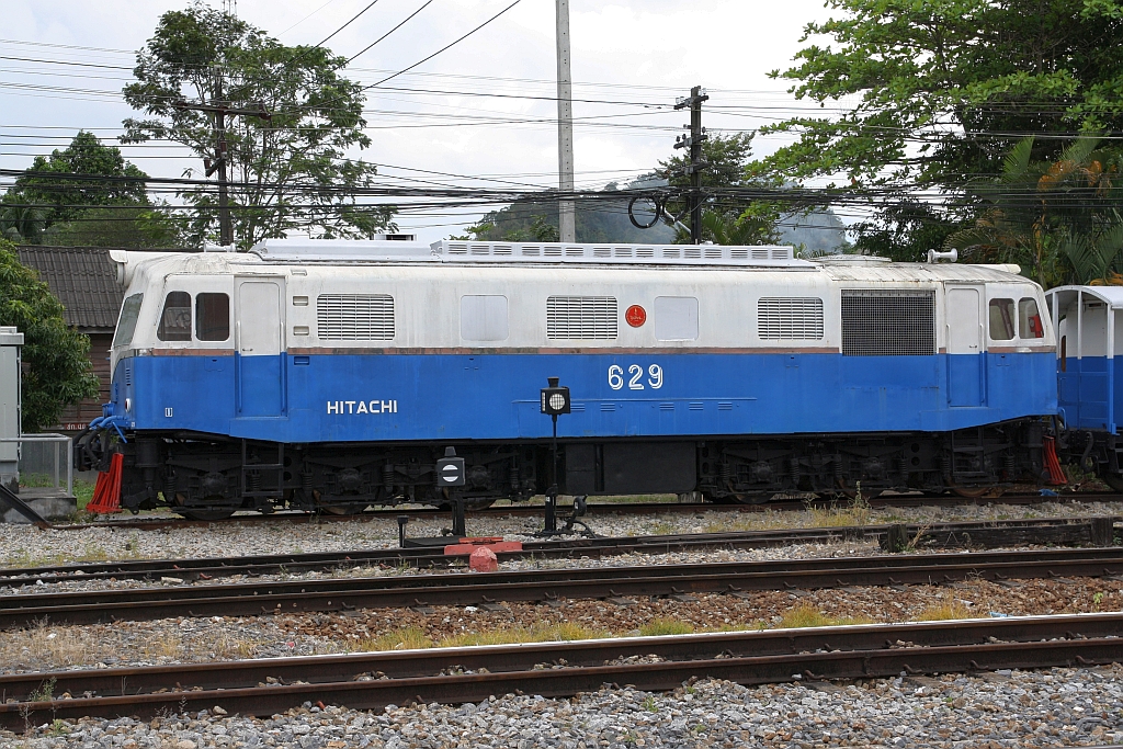 Von 1958 bis 1961 hat Hitachi 20 Stück diesel-elektrische Co'Co' Lokomotiven mit den Betriebsnummern 611-630 für Thailand gebaut. Die 629 ist noch erhalten und wartet im Depot Thung Song auf Ihr weiteres Schicksal. Bild vom 24.August 2011.