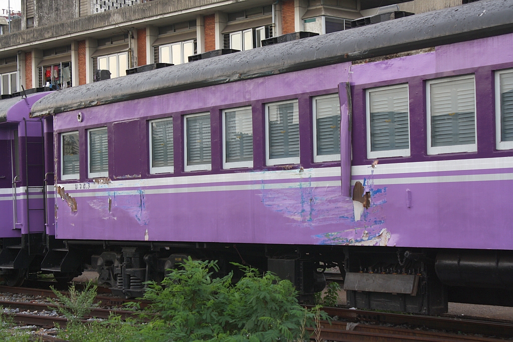 Auch der บวส.3 (บวส. =BCV./Bogie Radio Communication Van) ist bereits im neuem Design lackiert. Bf. Hua Lamphong am 24.Juli 2012.