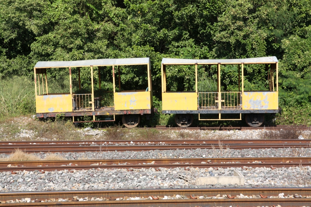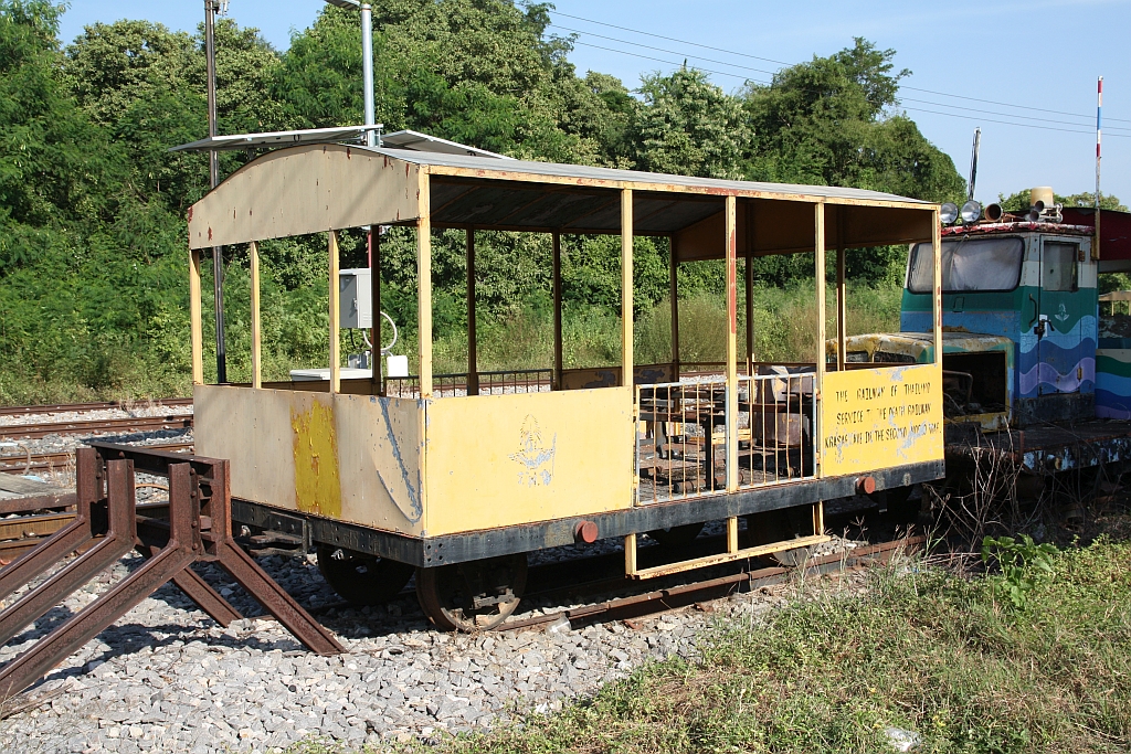 Nummernloser Bauzugwagen (vermutlich Geismar Type R10) am 03.Mai 2022 in der Chachoengsao Junction.